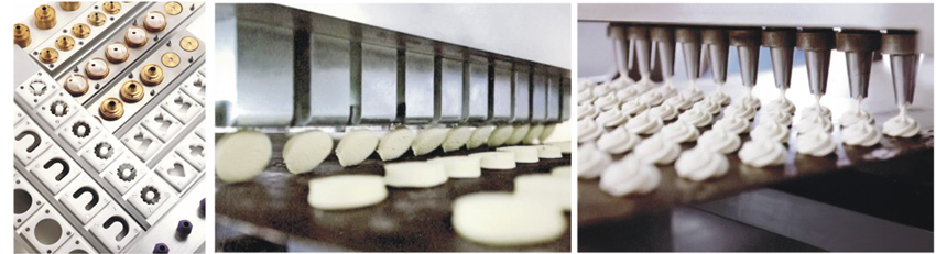 曲奇糕點機,是通過面團擠出成形,能生產多種獨特花式點心和曲奇餅干坯的成形機,具有技術先進、結構緊湊、多功能、操作簡單等特點,深受廣大用戶所歡迎,也是投資者目前市場最理想的新型儀器機械之一。該機具有多種模具,能生產幾十種花式曲奇餅干,用戶可根據需要自行調節選擇。成形的花式點心與曲奇餅干,形態獨特、花紋清晰、造型美觀。該機生產的生坯采用熱風旋轉爐及隧道爐烘烤均可。