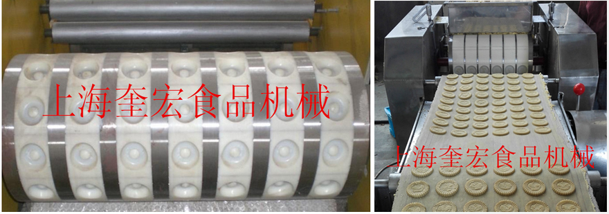主要功能及用途 本機(jī)用于桃酥餅干輥印脫模成形,將調(diào)粉機(jī)已調(diào)好的面團(tuán),經(jīng)輥印成各種形狀及不同克數(shù)的餅干生坯。 本機(jī)結(jié)構(gòu)簡單,分離刀裝有調(diào)節(jié)裝置,能調(diào)到最佳位置。輥印輥經(jīng)特殊設(shè)計,克服分離刀磨損不均勻的現(xiàn)象,花輥垂直位置,更換方便。本機(jī)分為盤式用熱風(fēng)旋轉(zhuǎn)爐烤與隧道爐直接烘烤。